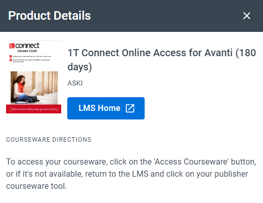 After clicking on the “LMS Home” button, you will be directed to your learning management system (LMS) where you may access the content via the link provided by the instructor.